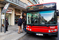 The busiest stops have information panels set into the bus stop shelter or on a solar pole, showing the anticipated arrival times of the next buses and providing service information.